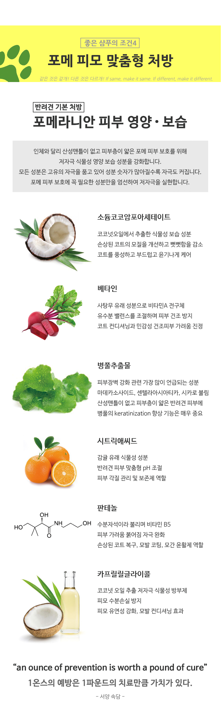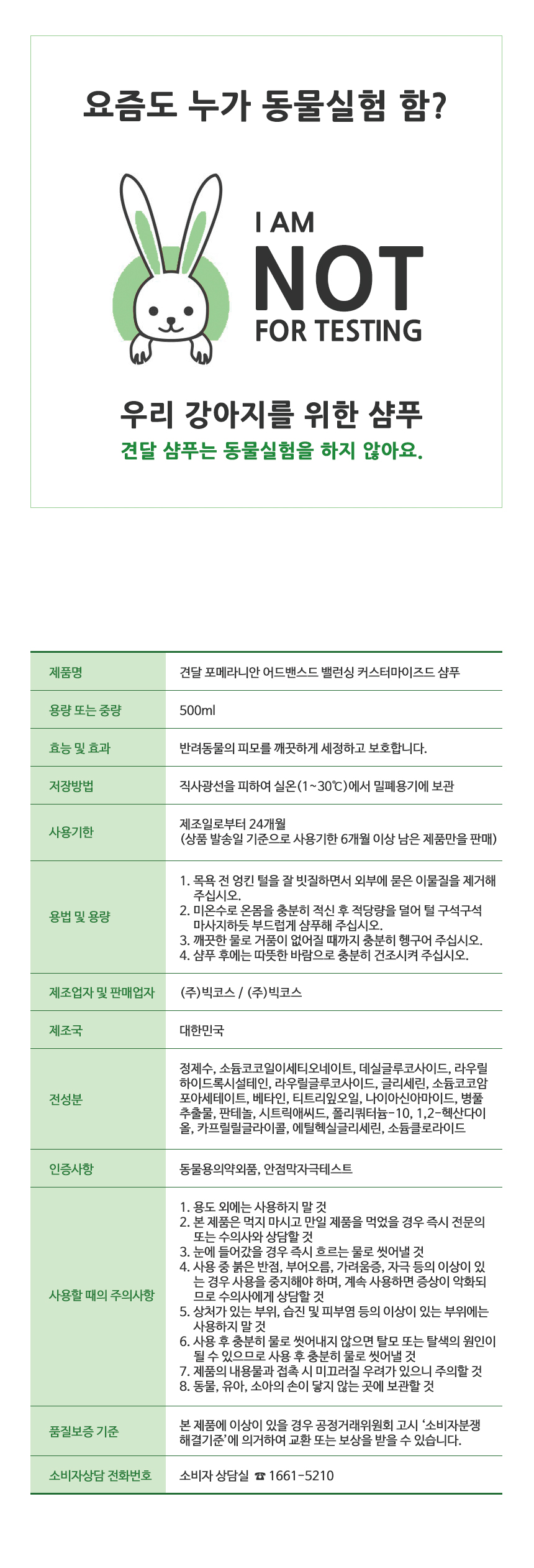 | 제품 주요 사양 | 포메라니안 피부 최적 pH5.7 맞춤형 강아지 샴푸 |