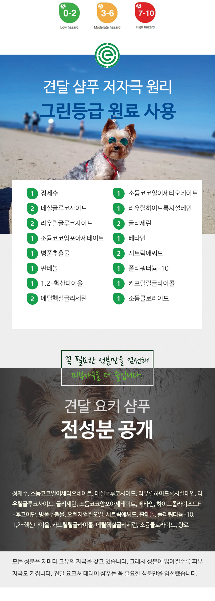 | 제품 주요 사양 | 요크셔 테리어 피부 최적 pH7.0 맞춤형 강아지 샴푸 |